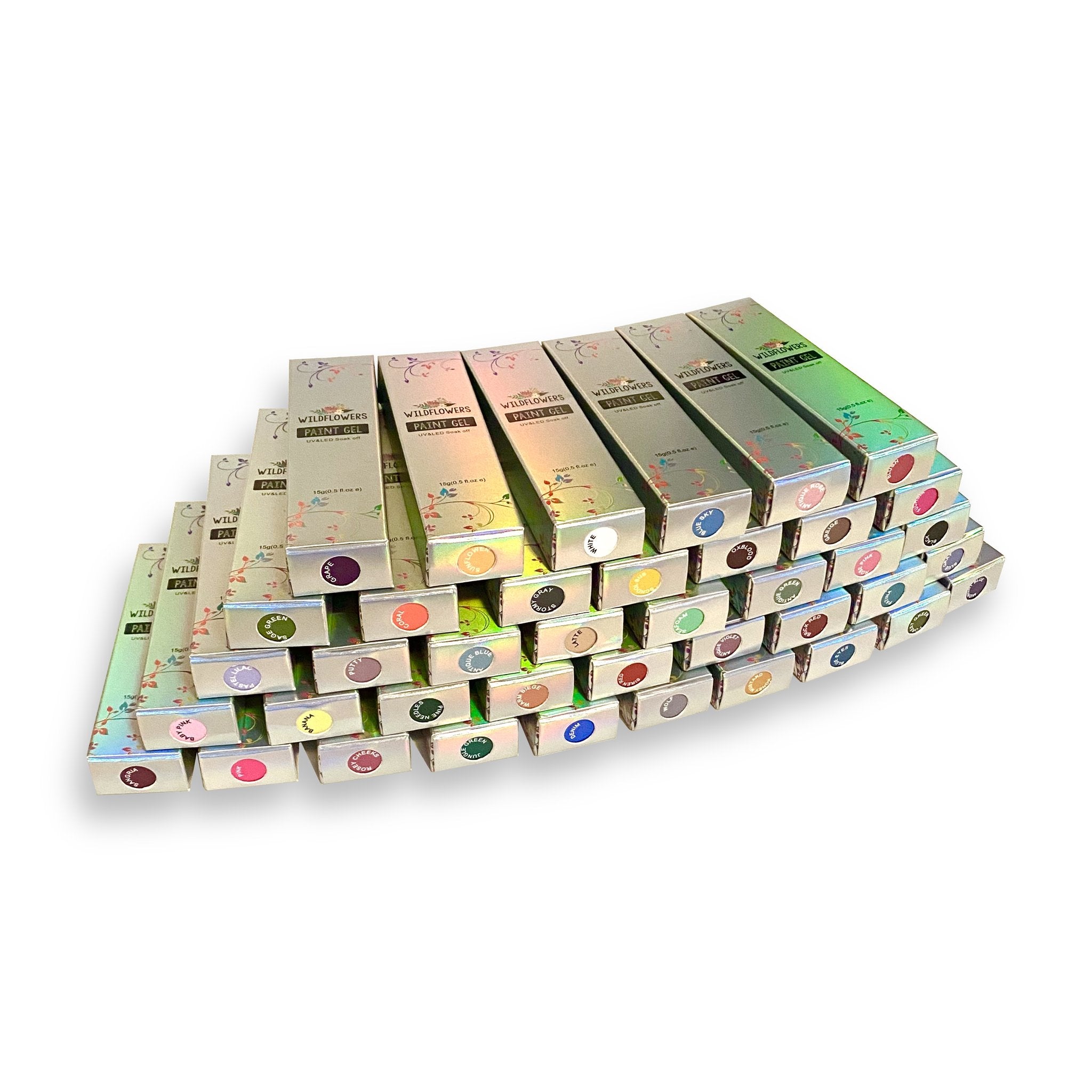 Wildflowers Painting Gels are hyper-pigmented gel paints, 50 colors available.  (including NEONs and Silver, Gold, and Rose Gold.